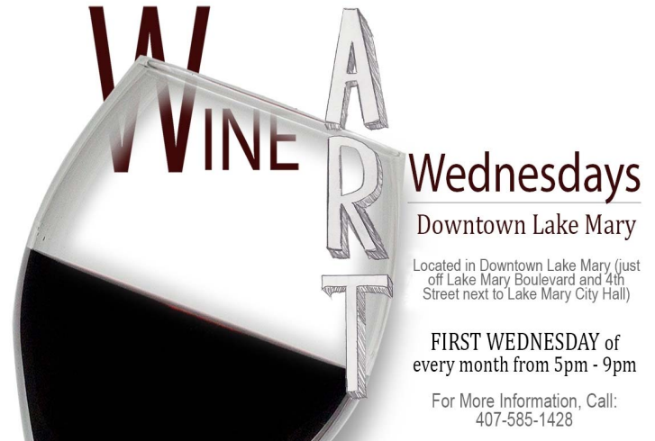 Escape to downtown Lake Mary for WineArt Wednesday which is held on the first Wednesday of every month.