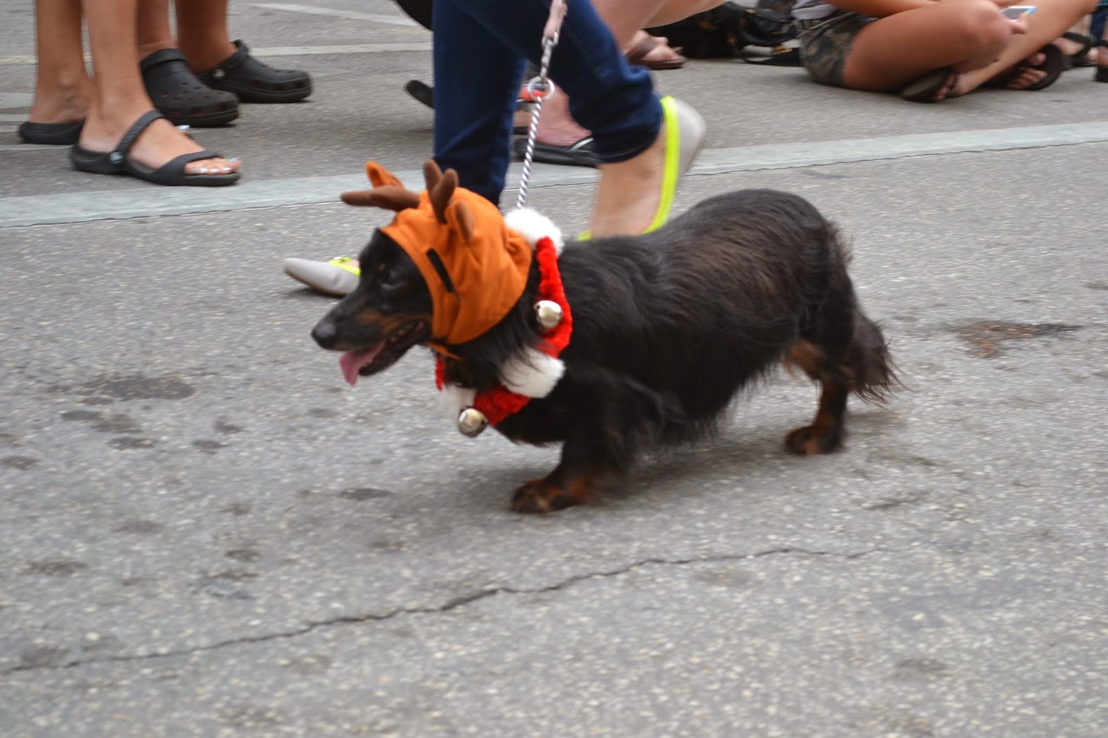 Hundreds of onlookers lined the one square block parade route at noon on New Year's Eve for the ninth annual Dachshund Walk. Approximately 170 dogs and about twice that many humans with stickers stating, "Walking in a Wiener Wonderland" paraded from the city Courthouse, up Fleming Street, a block down the famous Duval Street, then down Southard street and back to the courthouse. All-in-all, one complete square block, surely the shortest parade Key West has to offer ... perfect for short legs.