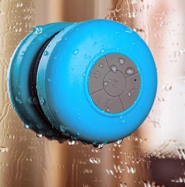 If you're like me you love to bring your music into the shower and sing and dance along - without getting electrocuted. So this tiny bluetooth enabled waterproof speaker easily sticks to the wall and plays music from your nearby (and dry) iPod or other Bluetooth music device.