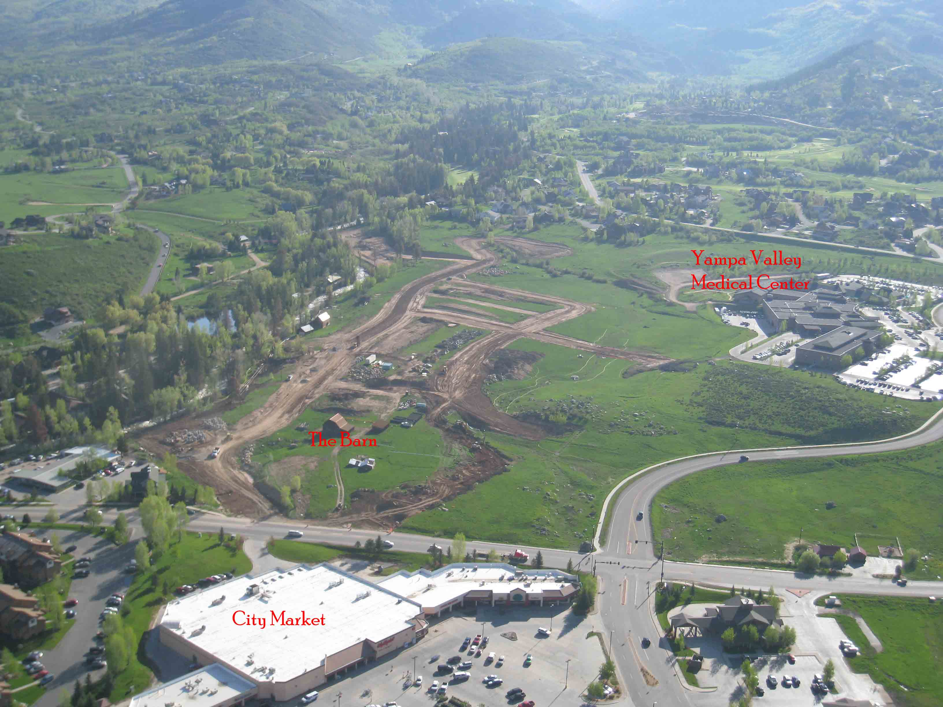 The photo below shows how centrally located Steamboat Barn Village is to shopping and transportation. It’s literally across the street from the City Market and Walmart (although with the elevation gains you don’t see the shopping area from Barn Village.) The Yampa Valley Medical Center is close by, and you’re a short walk or bike ride from Starbucks, the post office, and Safeway.