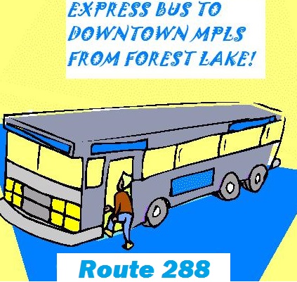 Route 288 currently offers 7 south bound and 8 north bound trips daily. Departure times run at just before 6 AM with a last run approximately 8 AM and get commuters downtown in an stress free 45 minute ride! Using shoulders and commuter lanes gets the riders to their downtown workplace destination quickly and safely. Return express rides to Forest Lake start just after 3PM and run approximately every 25-30 minutes until approximately 5:45PM.