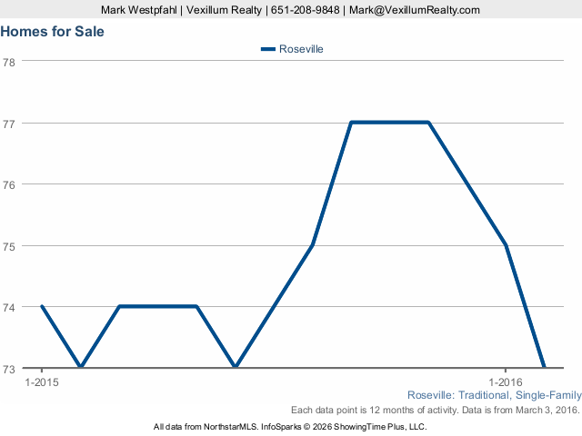 Inventory in Roseville of non-distressed single family homes compared to this time last year.