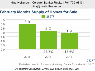 Without doubt, it continues to be a seller's market in the 28277 zip code and very competitive, with many homes selling within days of being listed for sale, and with little indication that this will change any time soon in 2017.