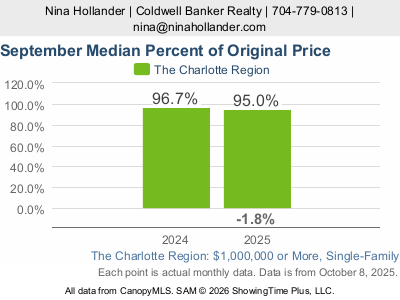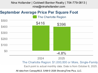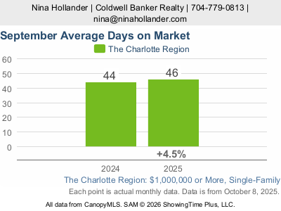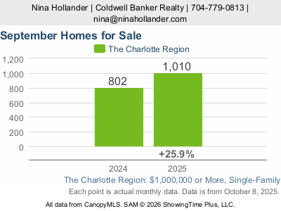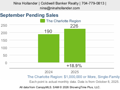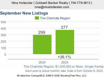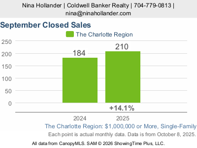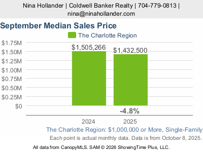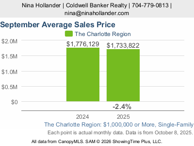 This Charlotte region luxury homes market September 2025 update is provided by Nina Hollander with Coldwell Banker Realty, Greater Charlotte Region luxury residential real estate expert serving Greater Charlotte luxury home buyers and sellers since 1999.