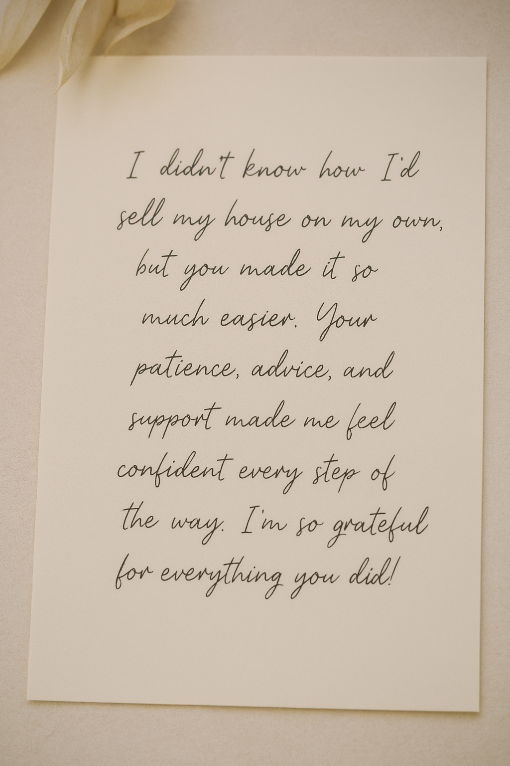 Vivian’s willingness to keep moving forward was inspiring. She asked questions, shared her concerns, and trusted us with the process even when she felt uncertain. When the house sold, she sent us a heartfelt note of thanks, and it was such a rewarding moment to know we had made a difference.
