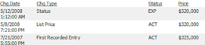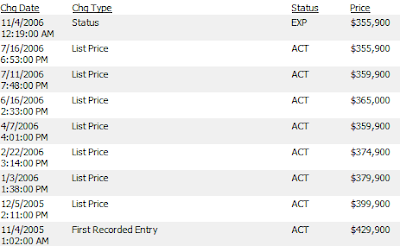 As you'll see from the MLS and FSBO history below (working from the bottom up), this seller first put her home on the market in November of 2005 at a price of $429,900. Now it's still on the market - at a price of $329,900. With each price reduction her listing became more competitive, but her home remained over-priced. Meanwhile the value of her home decreased as the market softened.